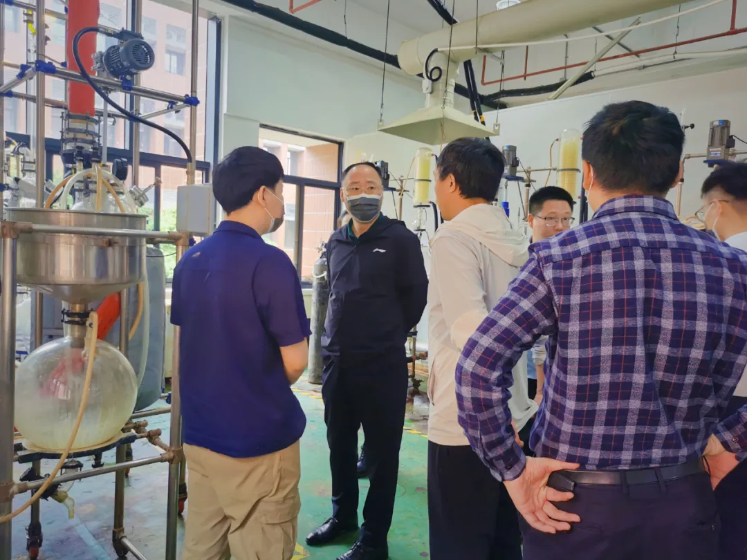 在八叶草董事长汤须崇、总经理叶聆音、技术专家赵应伟博士及生产负责人罗运传主管的陪同下,南投公司团队到海沧中试基地进行参观与指导: